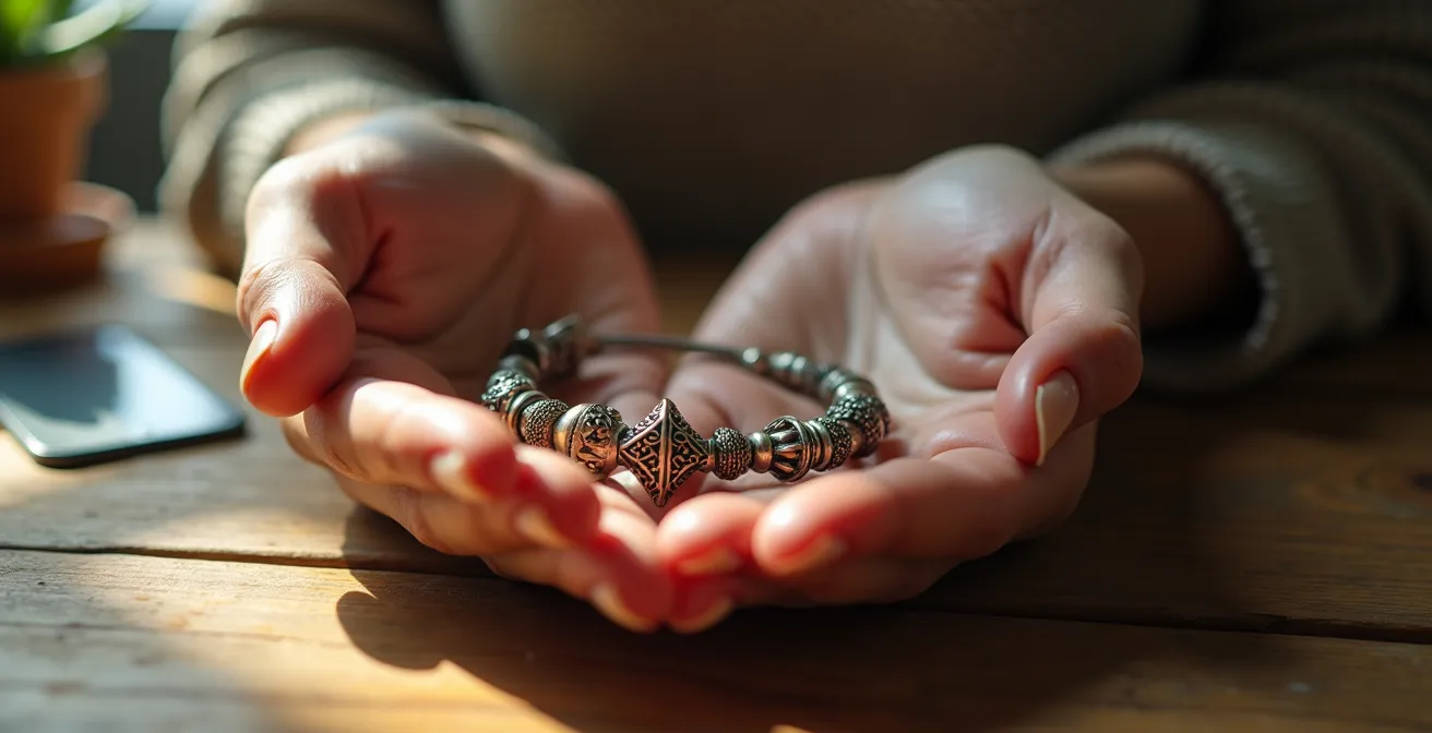 Una terapeuta española describe el «síndrome del charm fantasma»: la reticencia a quitar charms que representan etapas superadas. Su recomendación es brillante: en lugar de desecharlos, se crea un «archivo emocional». Una clienta creó una ‘pulsera de aprendizaje’ con charms de relaciones pasadas y trabajos perdidos. En lugar de llevarla, la guardó en una caja especial, un acto consciente de «honrar sin cargar». Esto le permitió iniciar con ligereza una nueva pulsera para su nueva vida en Valencia, simbolizando un comienzo fresco que no niega su historia.