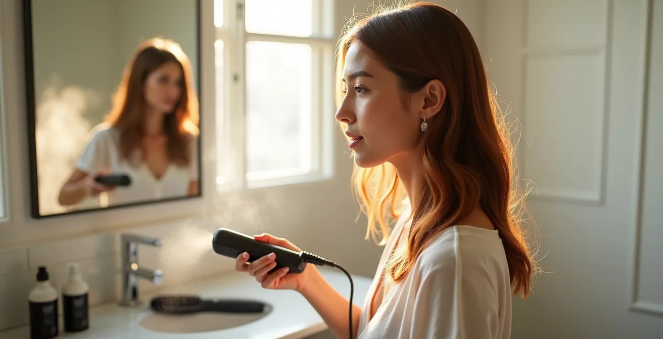 La verdadera protección a largo plazo no reside en coleccionar productos, sino en dominar la ciencia que hay detrás de cada herramienta. Este artículo no es una lista de trucos, sino un manual de operaciones. Analizaremos la física de los secadores, el punto de desnaturalización de la queratina, la química de los protectores y la ingeniería de las placas. El objetivo es que, al terminar de leer, no solo sepas cómo proteger tu cabello, sino que entiendas por qué cada paso es crucial, permitiéndote lograr ese acabado perfecto sin sacrificar la salud e integridad de tu pelo en el proceso.